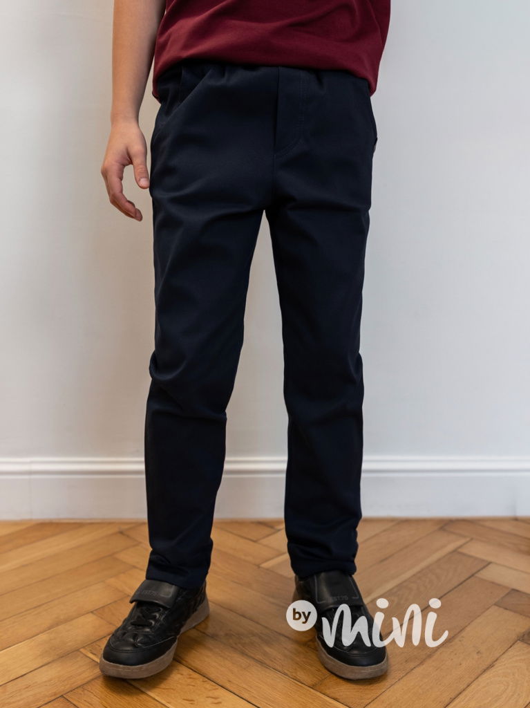 Společenské kalhoty z tkaniny, pas na stretch gumu, kapsy po stranách, AFK logo.