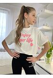 Stretch žebrovaná blůzka s dlouhým rukávem, řasení, potisk.