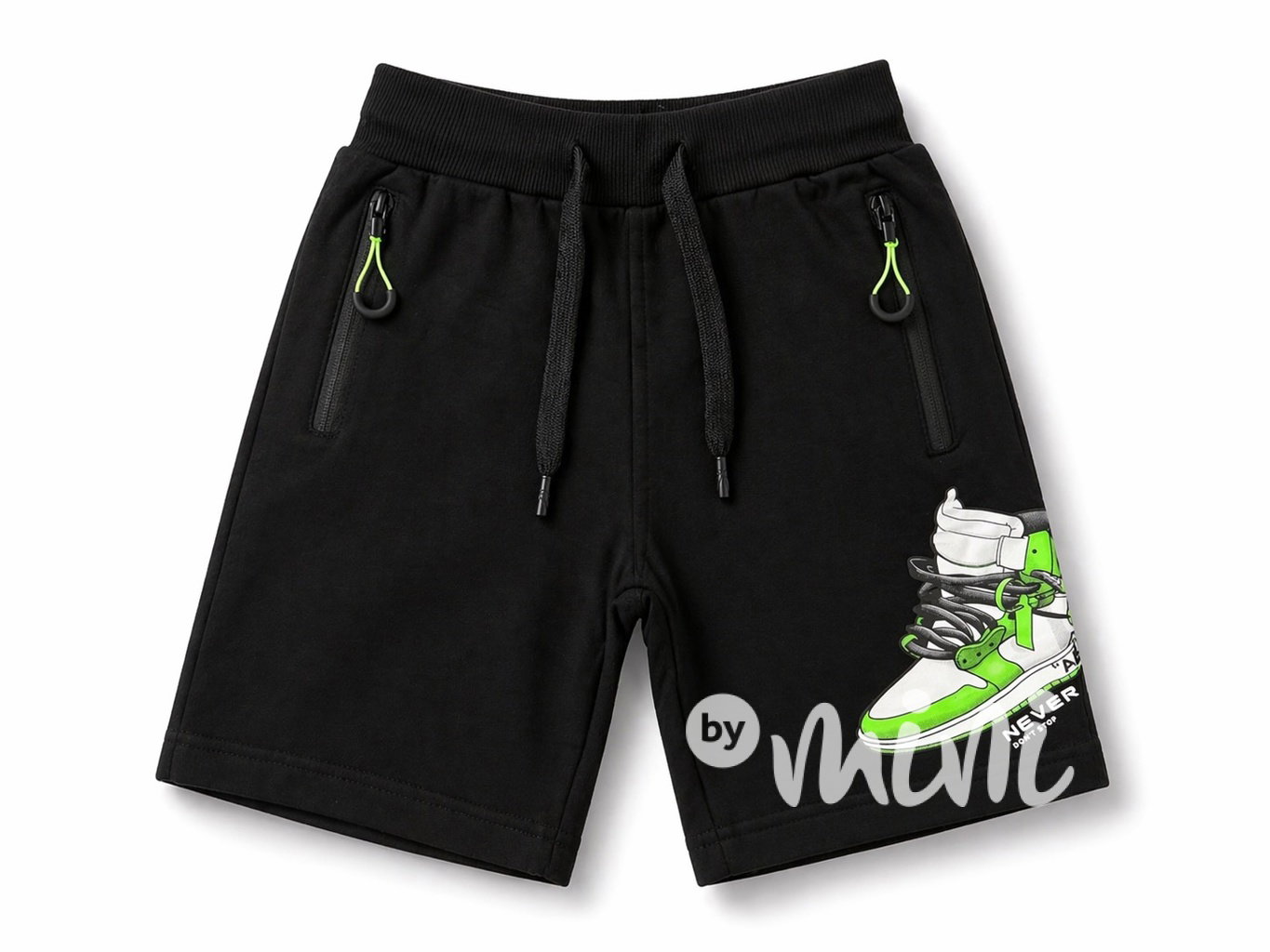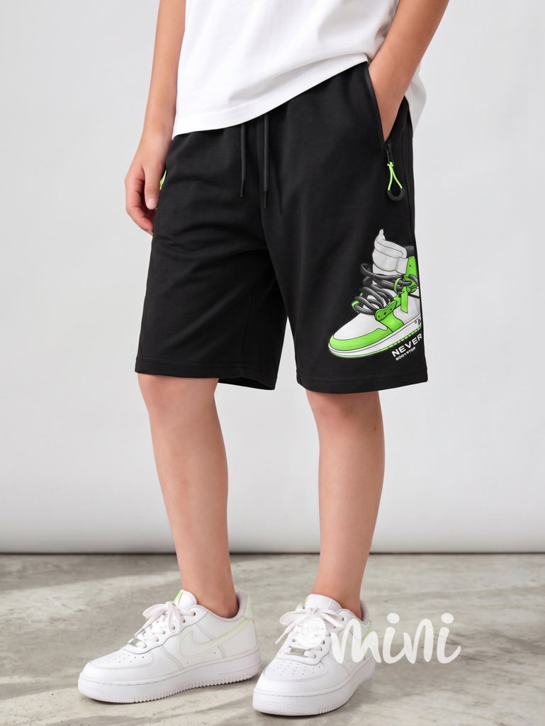 Bavlněné sporty kraťasy s potiskem, pas na stretch gumu, kapsy po stranách.