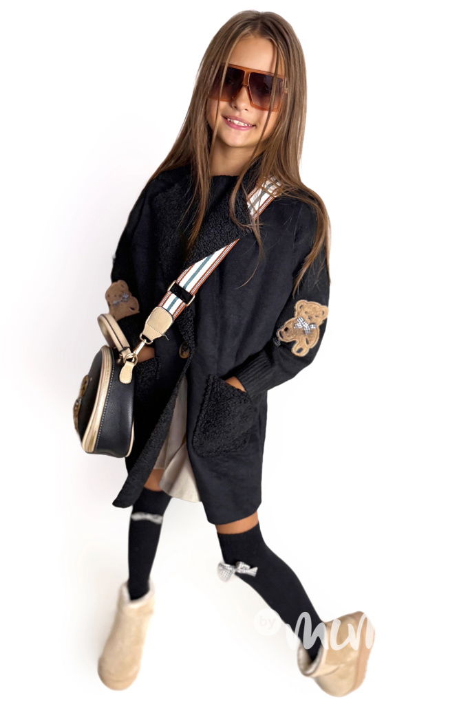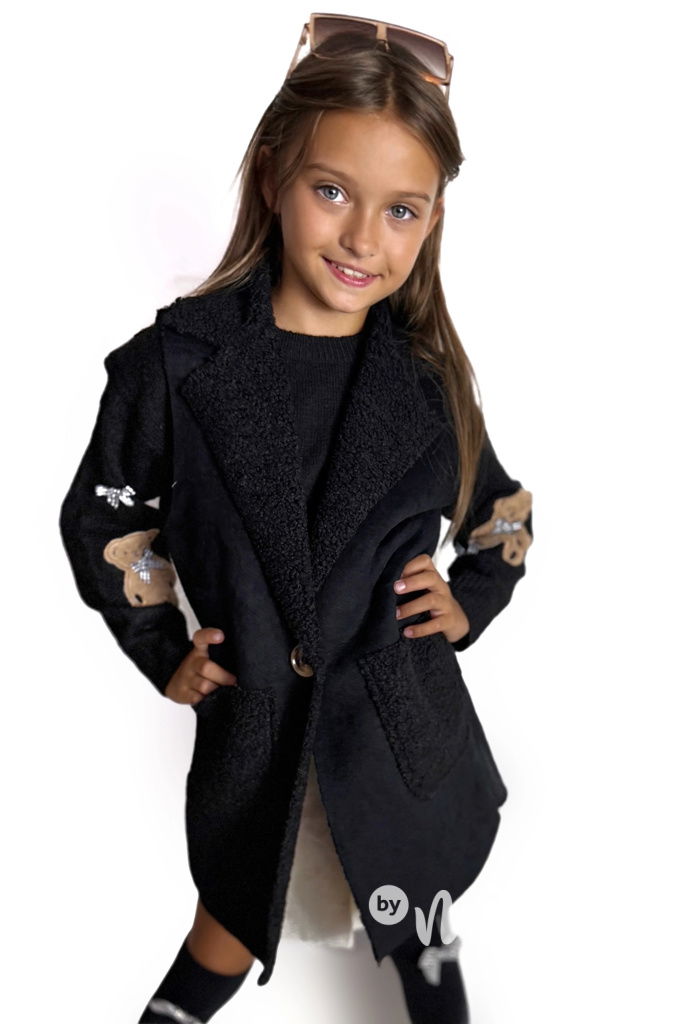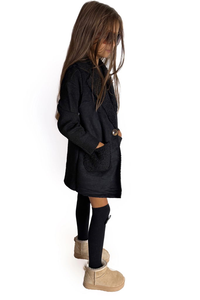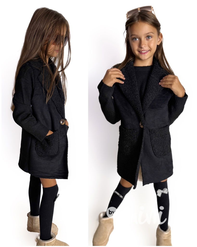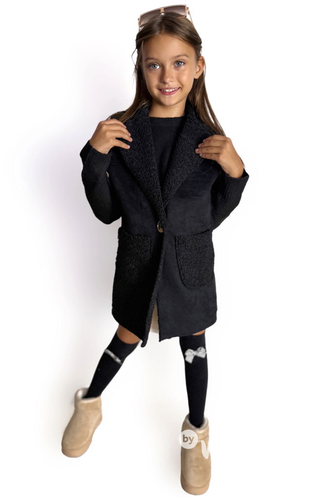 Dlouhý vesta z imitace broušené kůže a beránka.