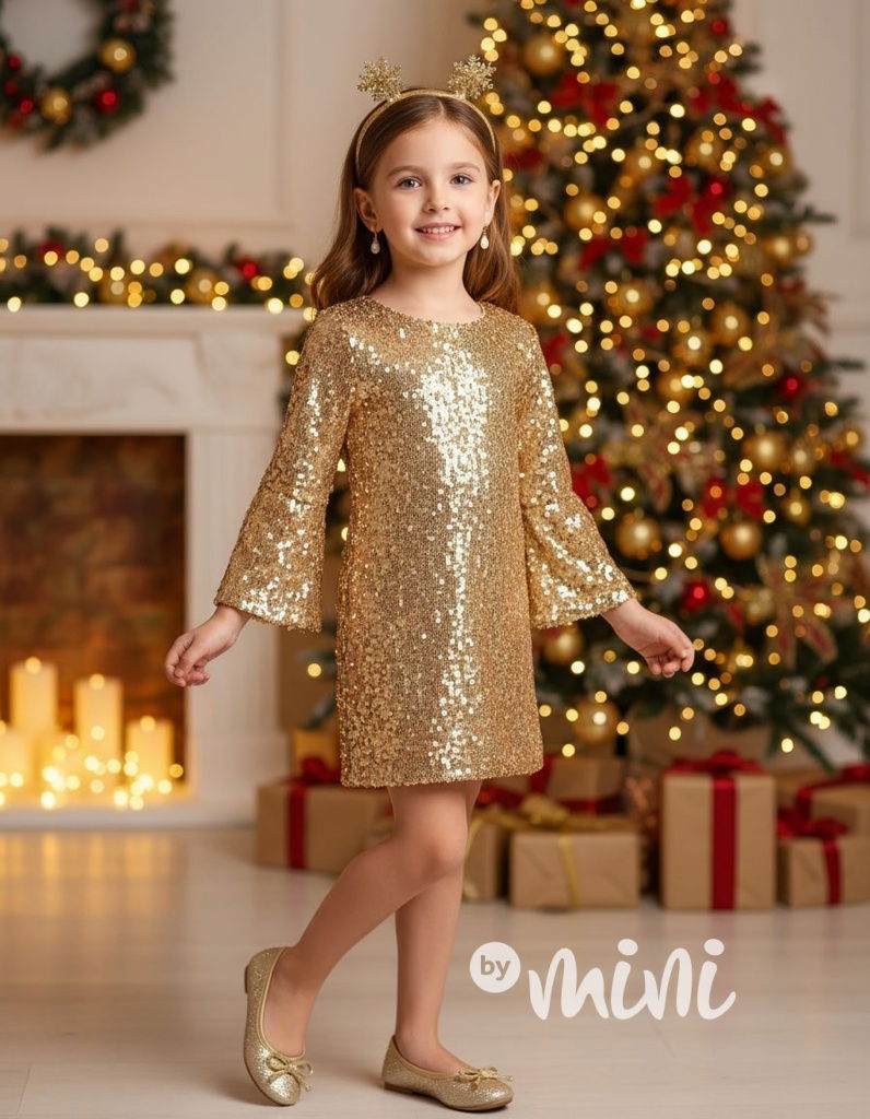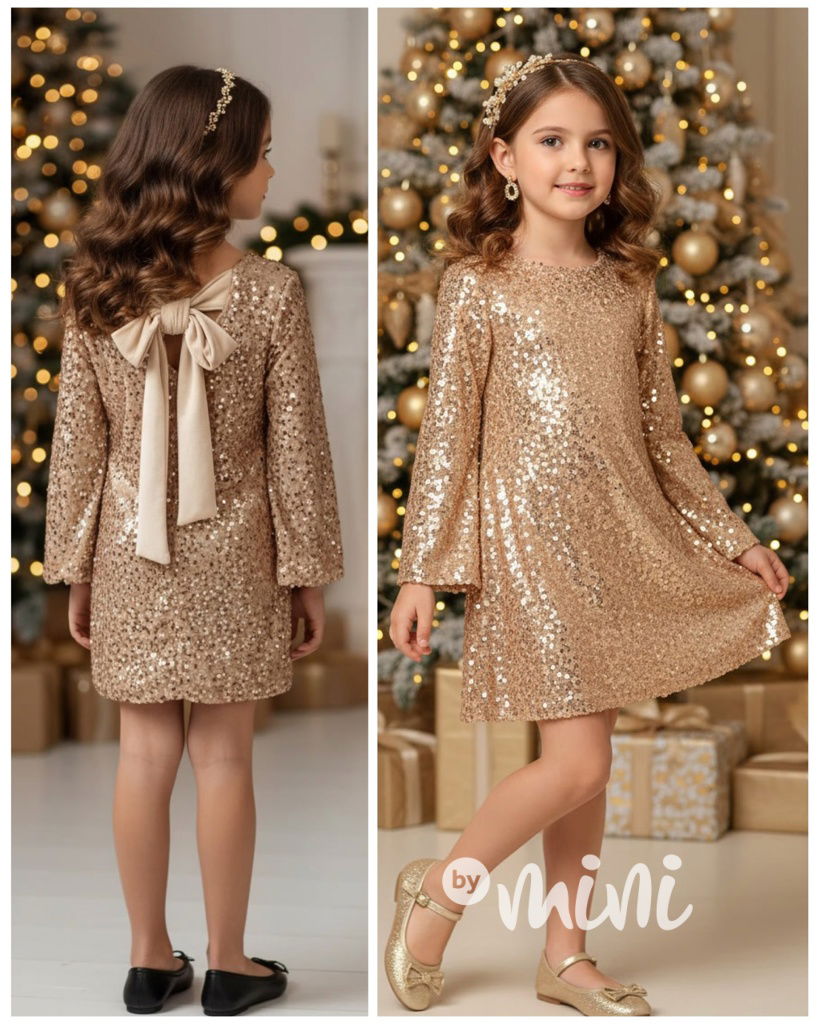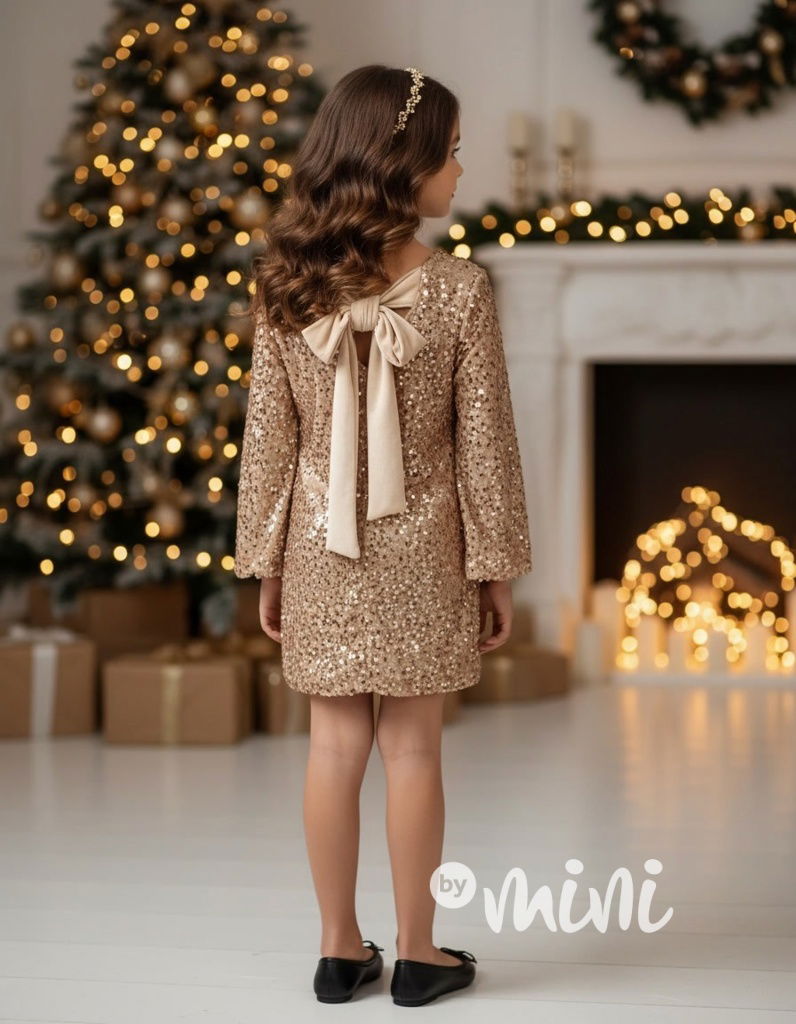 Krásné soft velur slavnostní flitr šaty s mašlí na zádech.