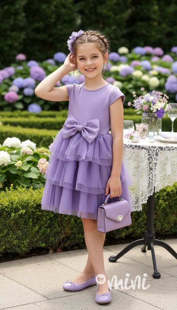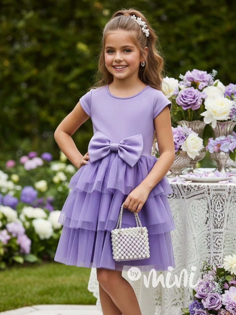 Slavnostní šaty s vrstvenou tylovou sukní, velká mašle.