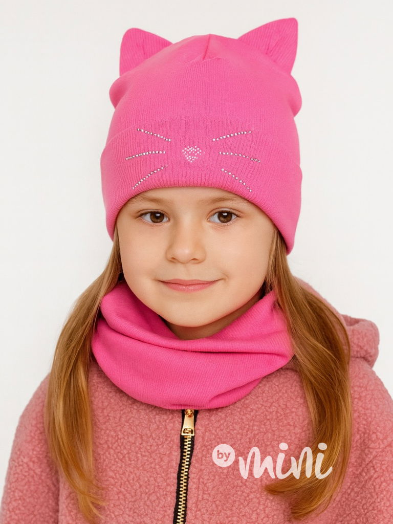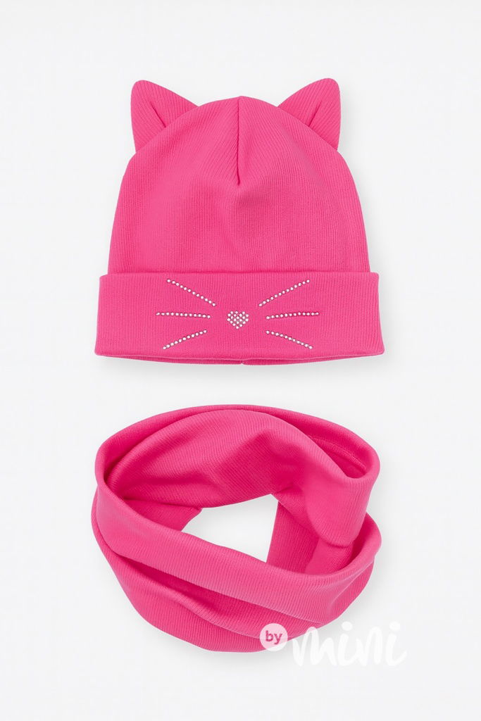 Příjemná stretch ouškatá čepka posetá kamínky + nákrčník.