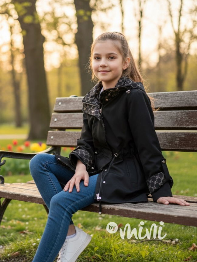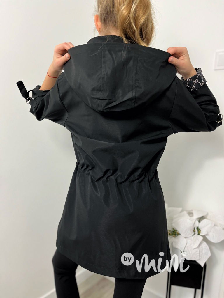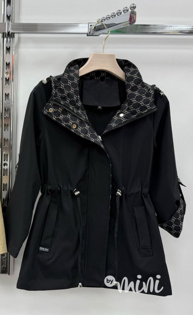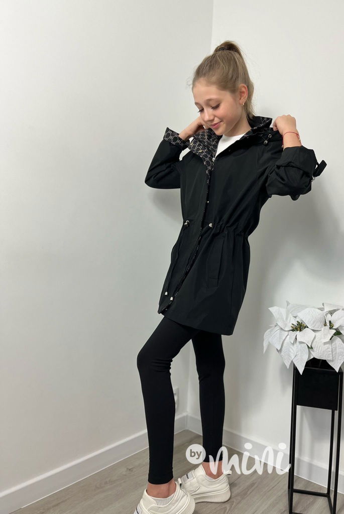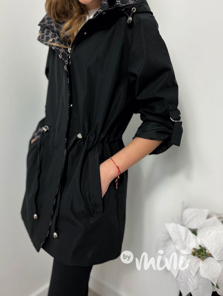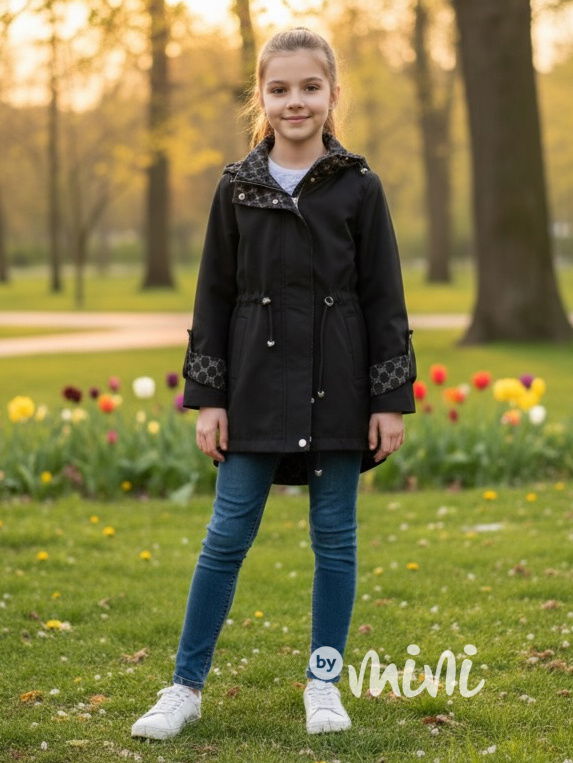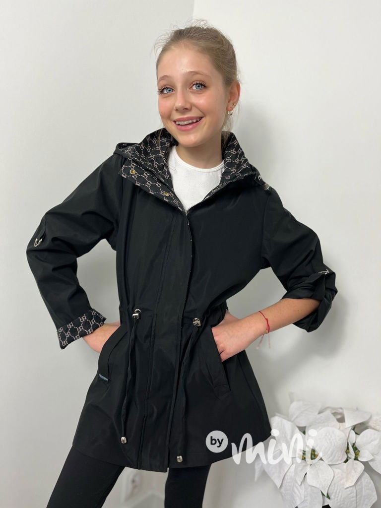 Jarní parka s kapucí, v pase na stahování, kapsy po stranách.