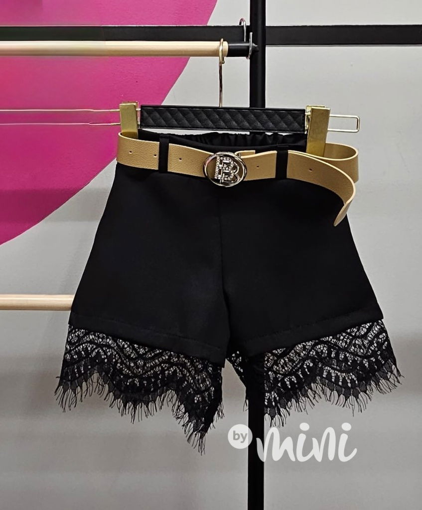 Černé kraťasy s krajkou a páskem