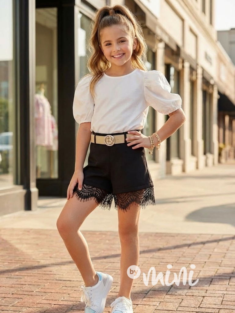 Trendy kraťásky zakončené krajkou, pásek do setu.