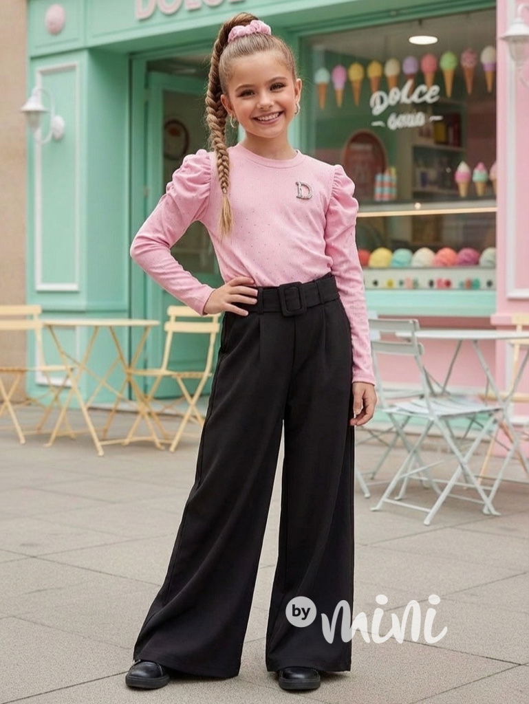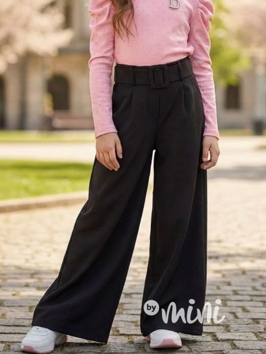 Černé široké elegant kalhoty s páskem MIA