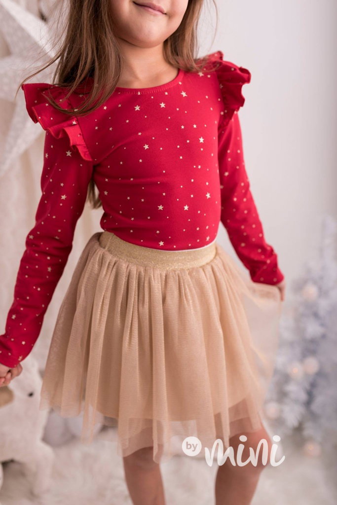 Nádherné body s hvězdičkami, v ramenou nařasené. Moc příjemný stretch materiál, vhodný do sukní i kalhot, spíše na tělo, zapínání jako klasické body dole na dva cvočky.