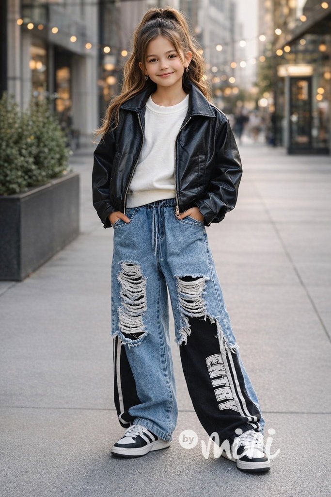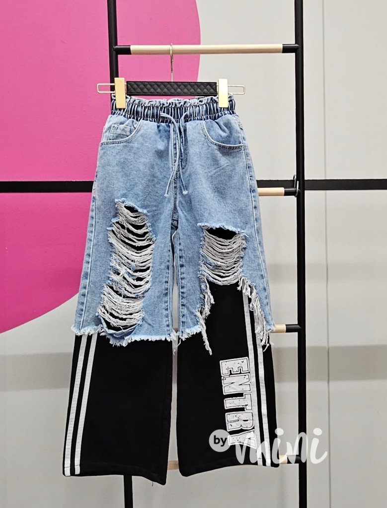 V pase na gumu, mix denimu a černých nohavic, potrhaný design, kapsy po stranách.