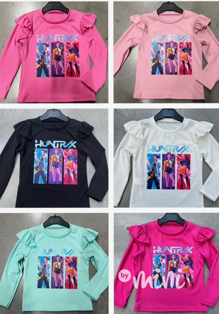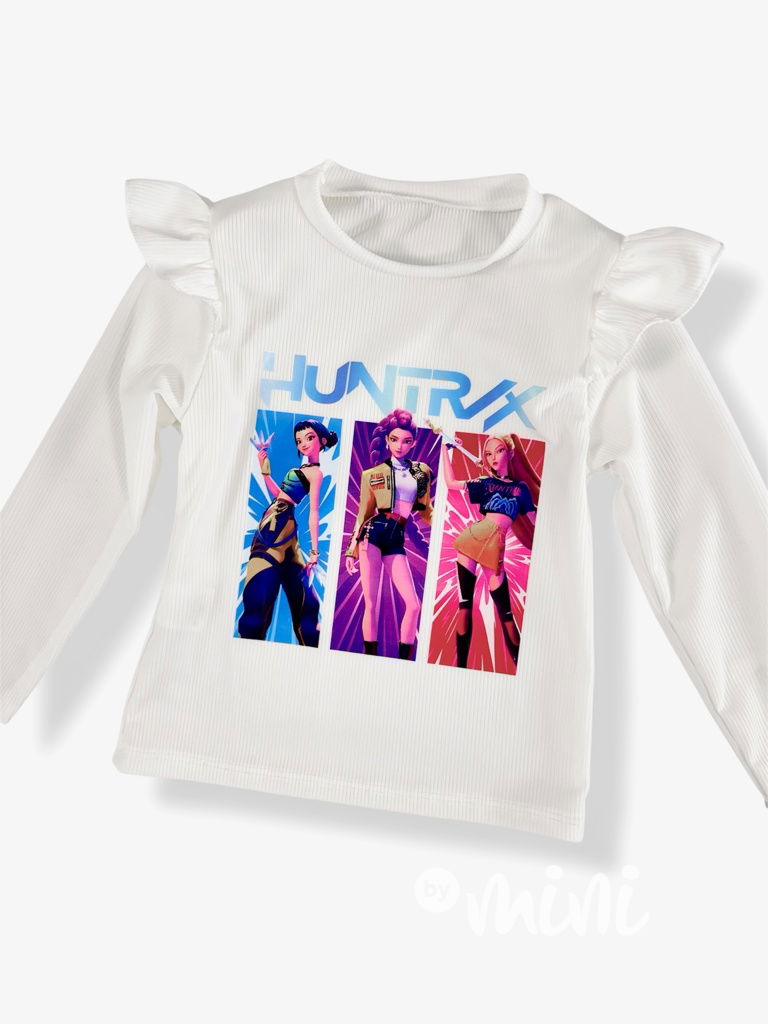 Žebrovaná blůzka s volánkem, dlouhý rukáv, motiv Lovkyně démonů.