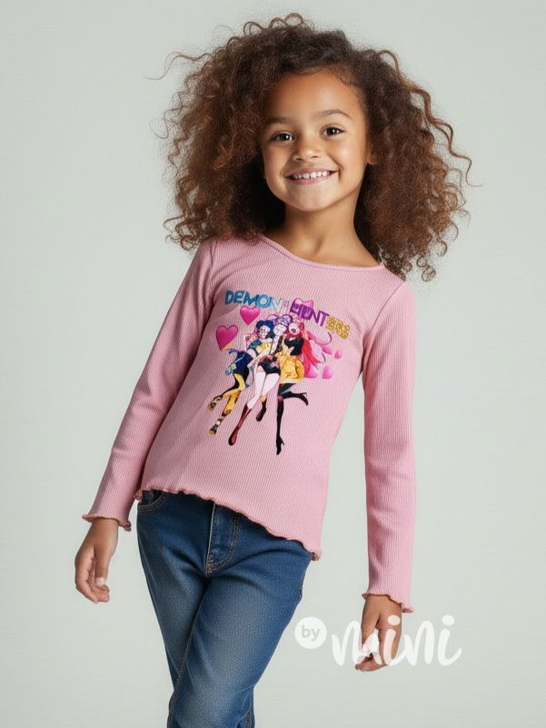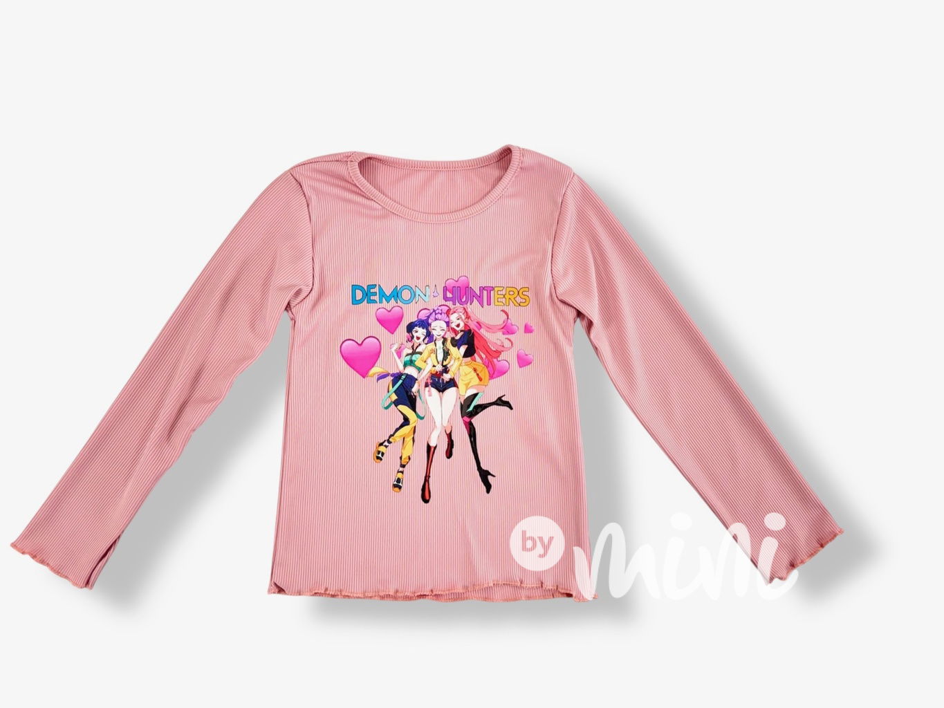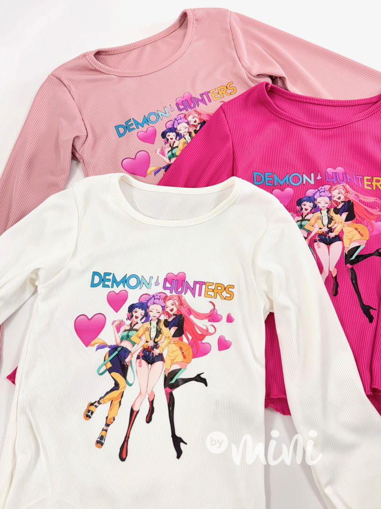 Stretch žebrované triko s dlouhým rukávem, motiv Lovkyně démonů.
