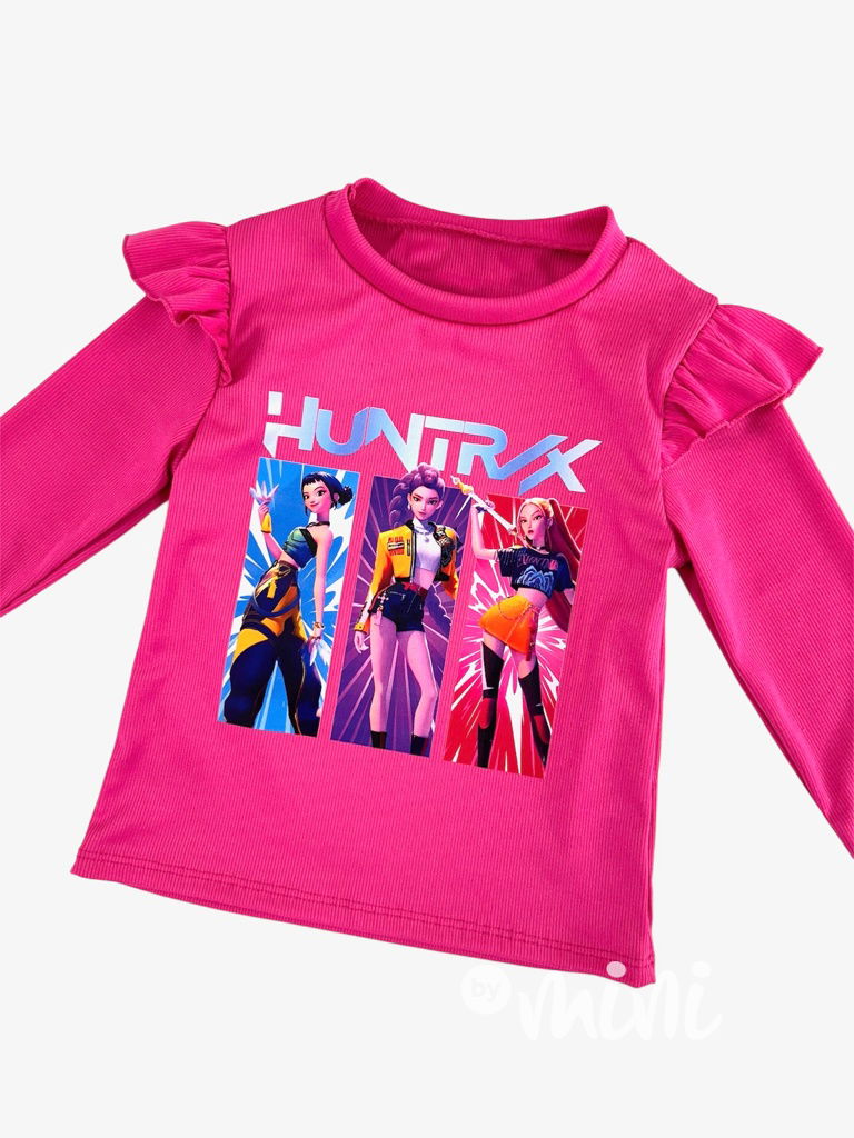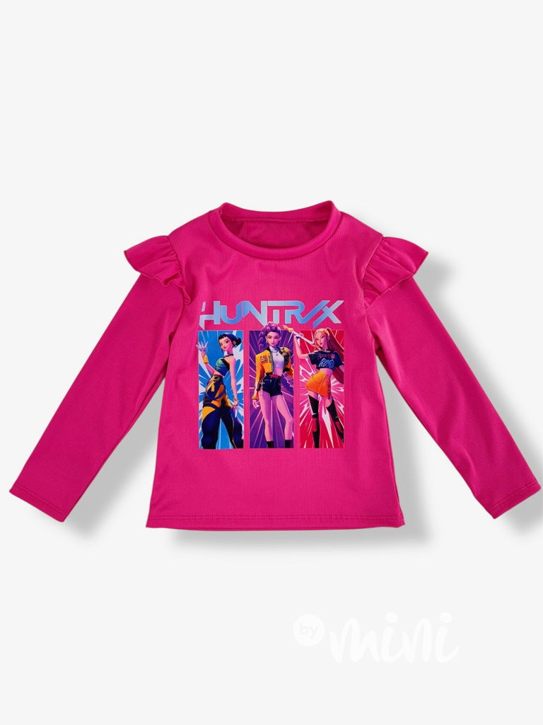 Žebrovaná blůzka s volánkem, dlouhý rukáv, motiv Lovkyně démonů.