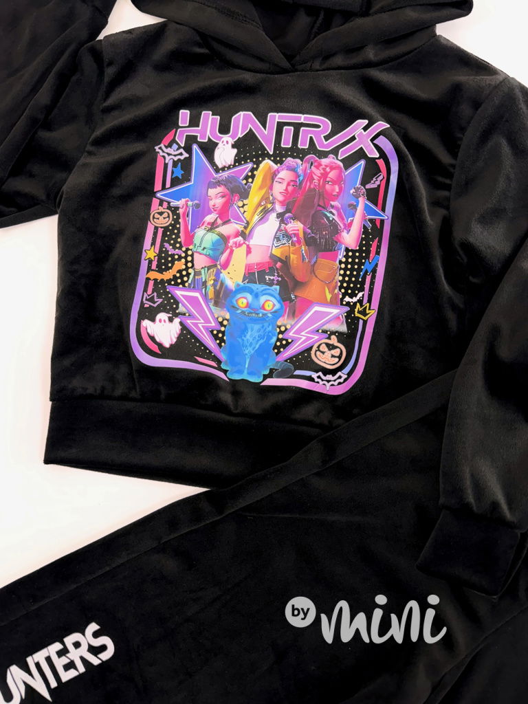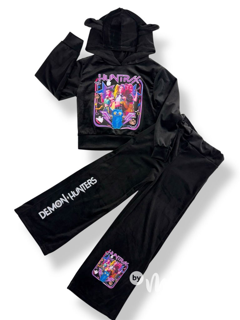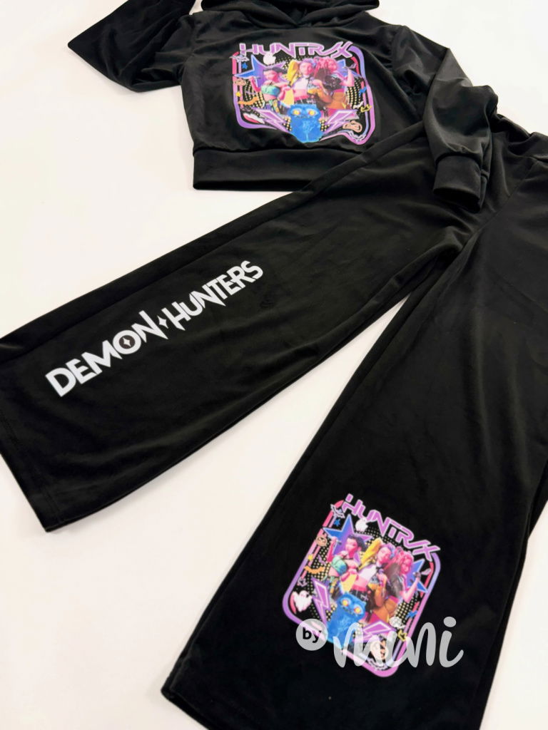Dívčí komplet: mikina s ouškama + volné široké tepláky s motivem Demon Hunters.