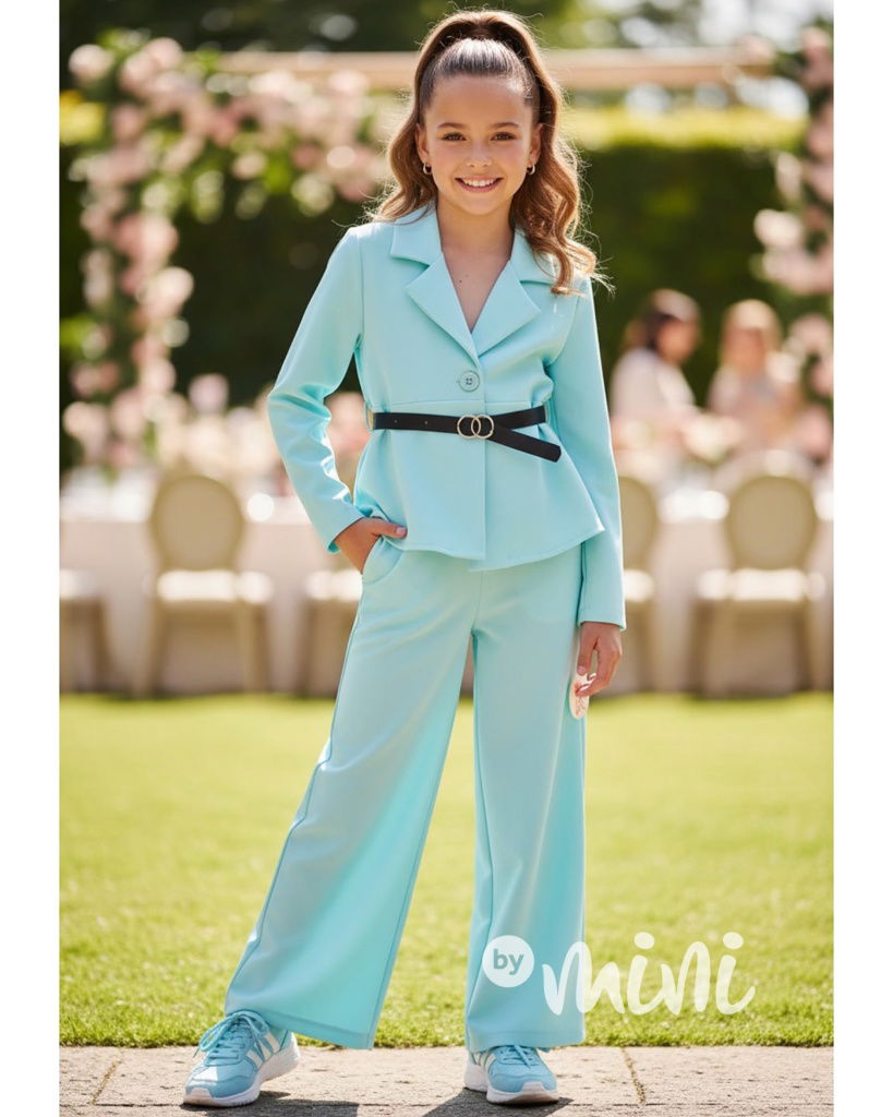 Elegant sako s páskem + volné kalhoty TYRKYS