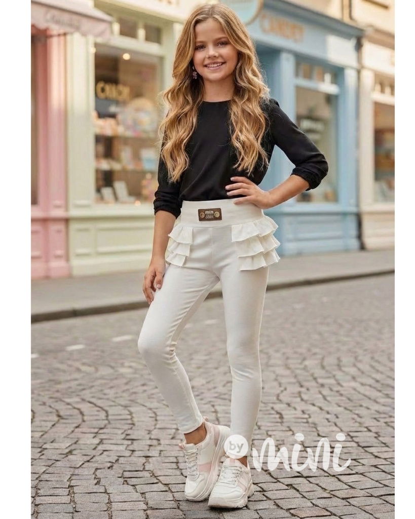 Fashion legínové kalhoty s volánky bílé