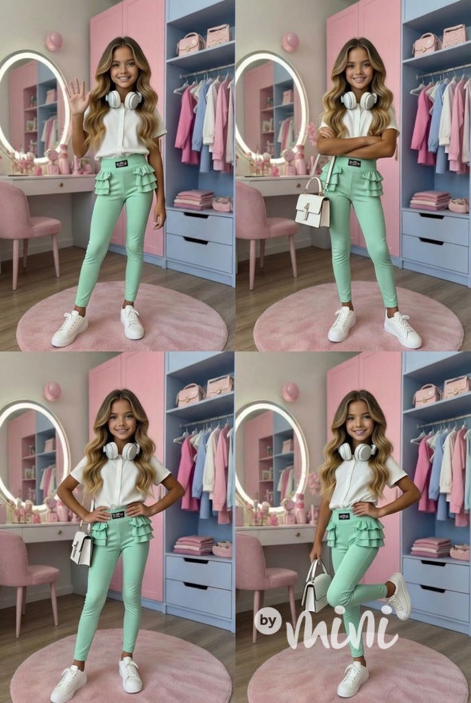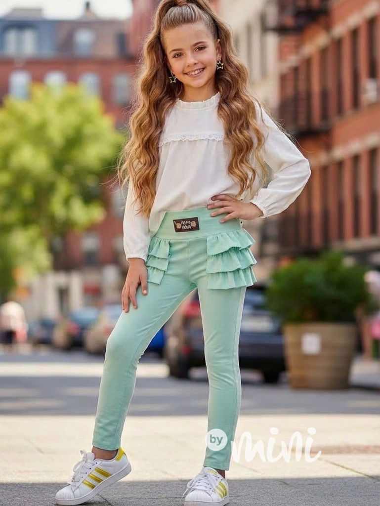 Fashion legínové kalhoty s volánky mint