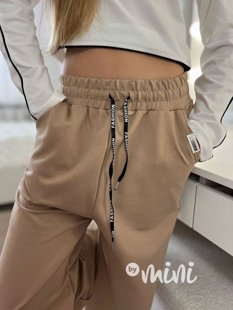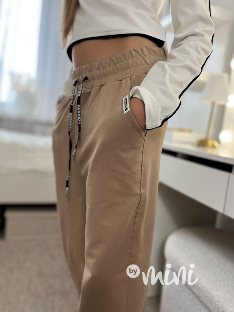 Stretch příjemné bavlněné tepláky volného lounge střihu, pas na stretch gumu, kapsy po stranách.