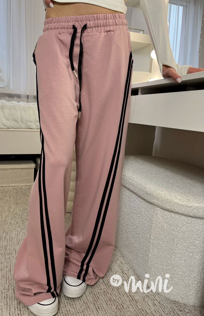 Stretch příjemné bavlněné tepláky volného lounge střihu, pas na stretch gumu, kapsy po stranách.