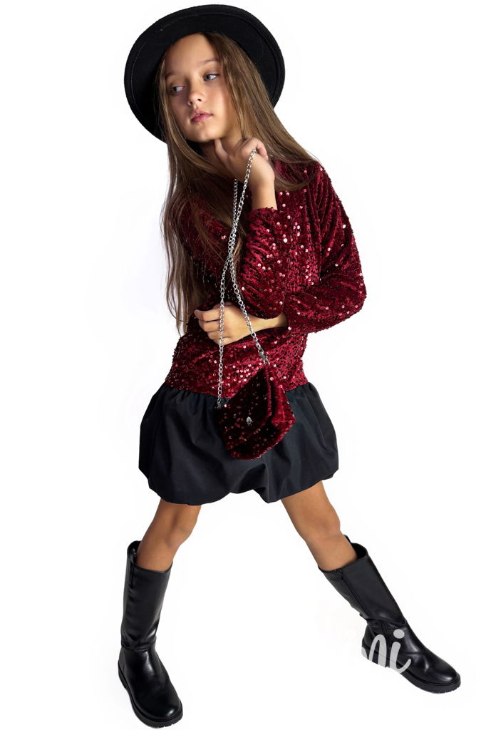 Flitrové šaty s kabelkou RED