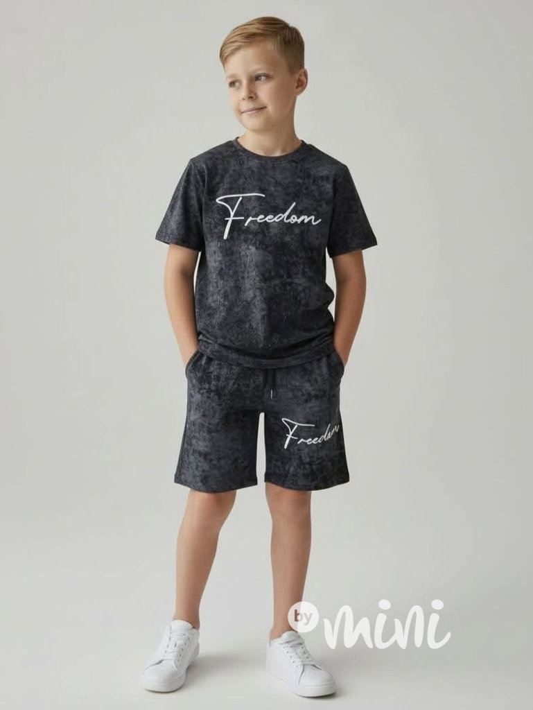 Stylová bavlněná souprava pro chlapce: triko + kraťasy.