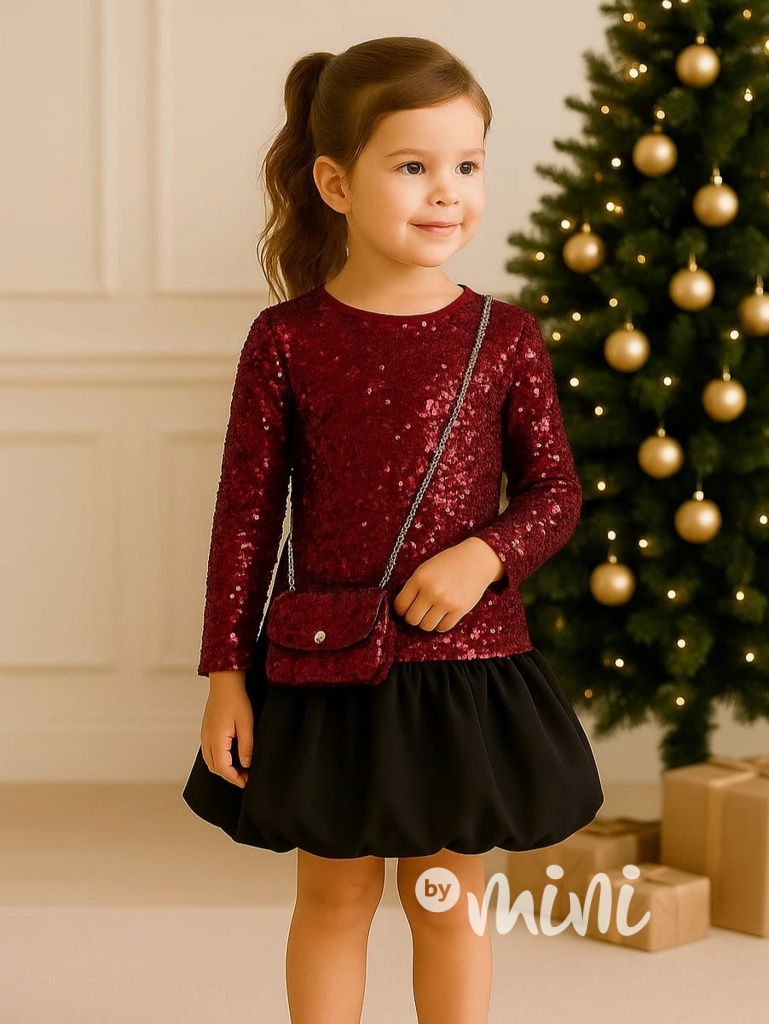Krásné slavnostní flitr šaty s balonovou sukní, kabelka do kompletu.