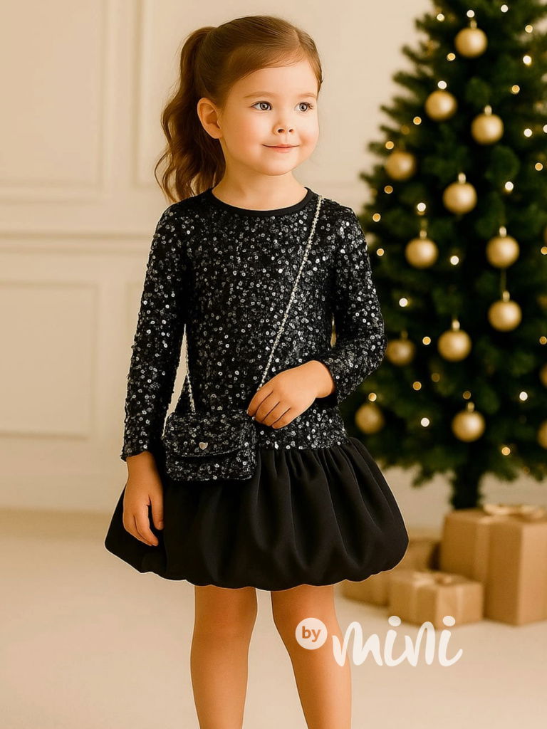 Krásné slavnostní flitr šaty s balonovou sukní, kabelka do kompletu.
