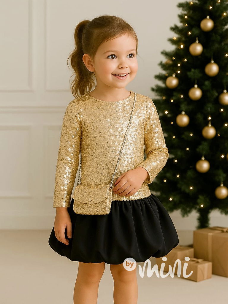 Krásné slavnostní flitr šaty s balonovou sukní, kabelka do kompletu.