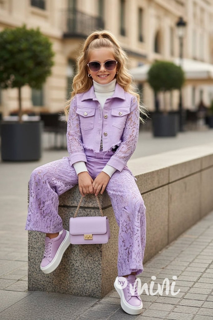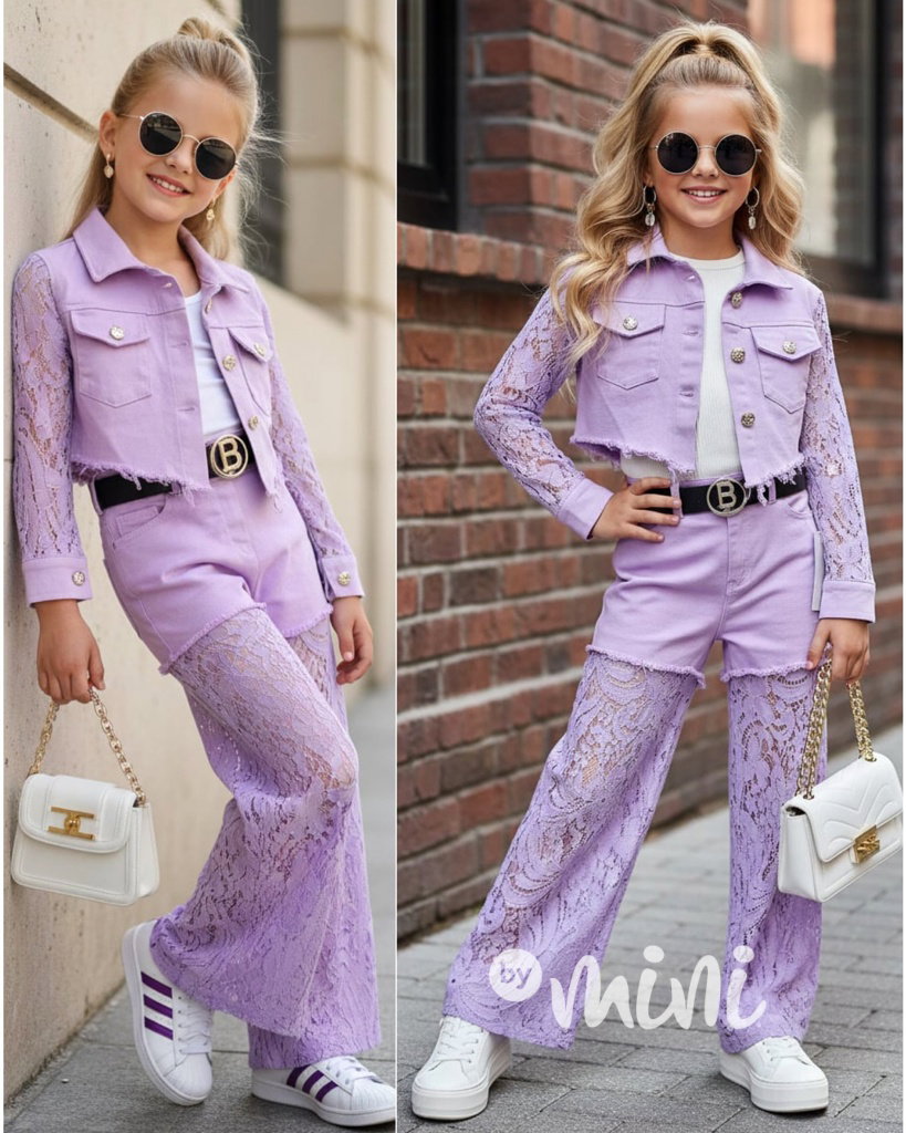 Glamour stretch džíny s krajkovými nohavicemi, stretch pas + pásek.