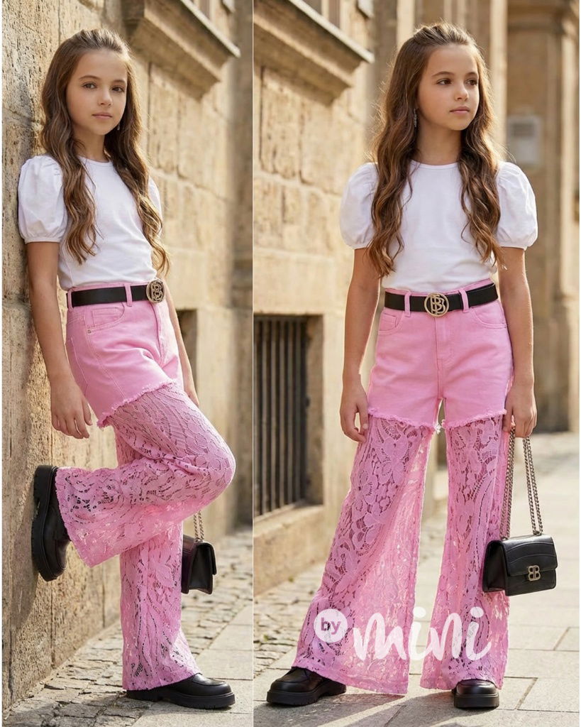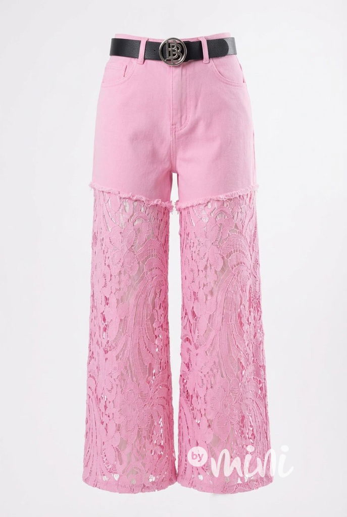 Glam lace džíny růžové + pásek