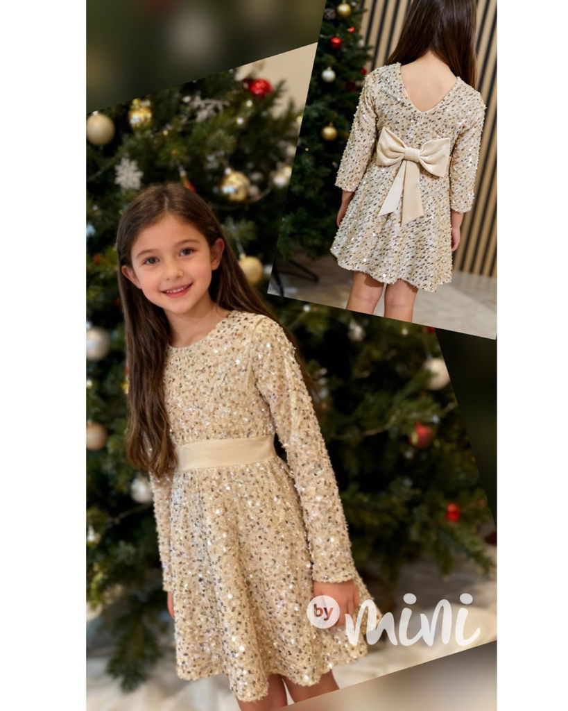 Krásné soft velur slavnostní flitr šaty s mašlí na zádech.