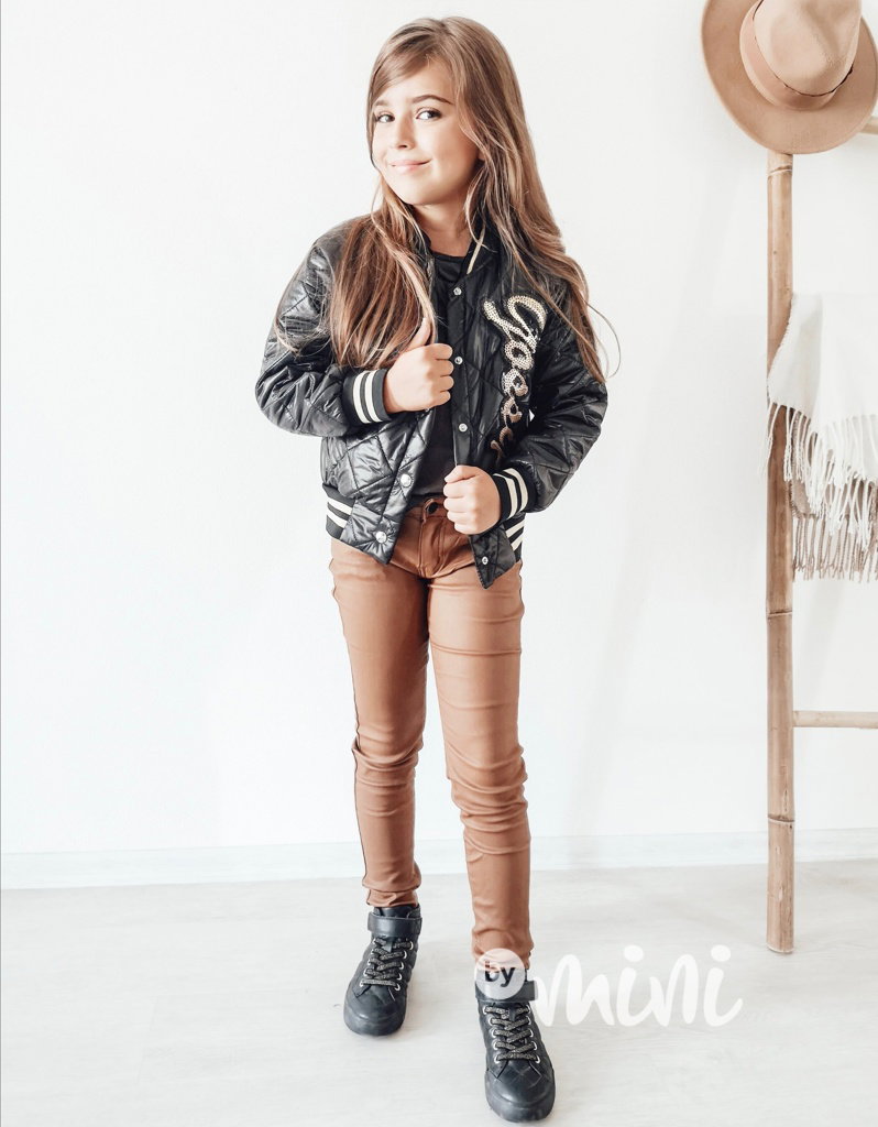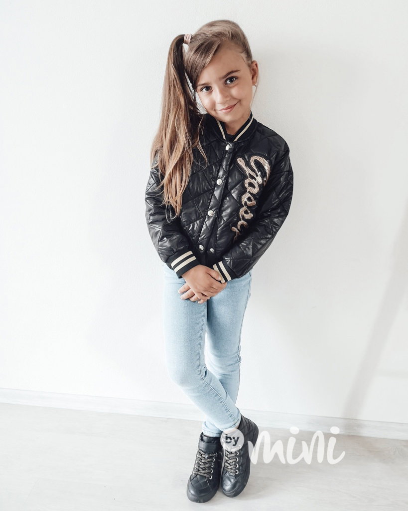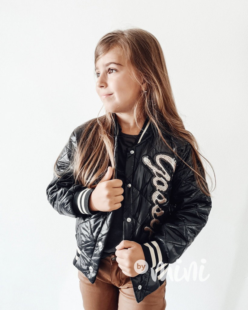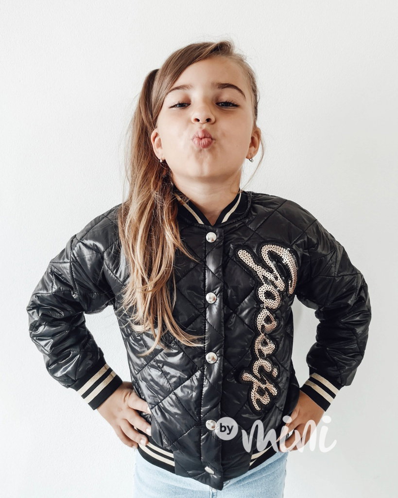 Přechodová prošívaná bunda, zapínání na cvočky, zlaté flitry.