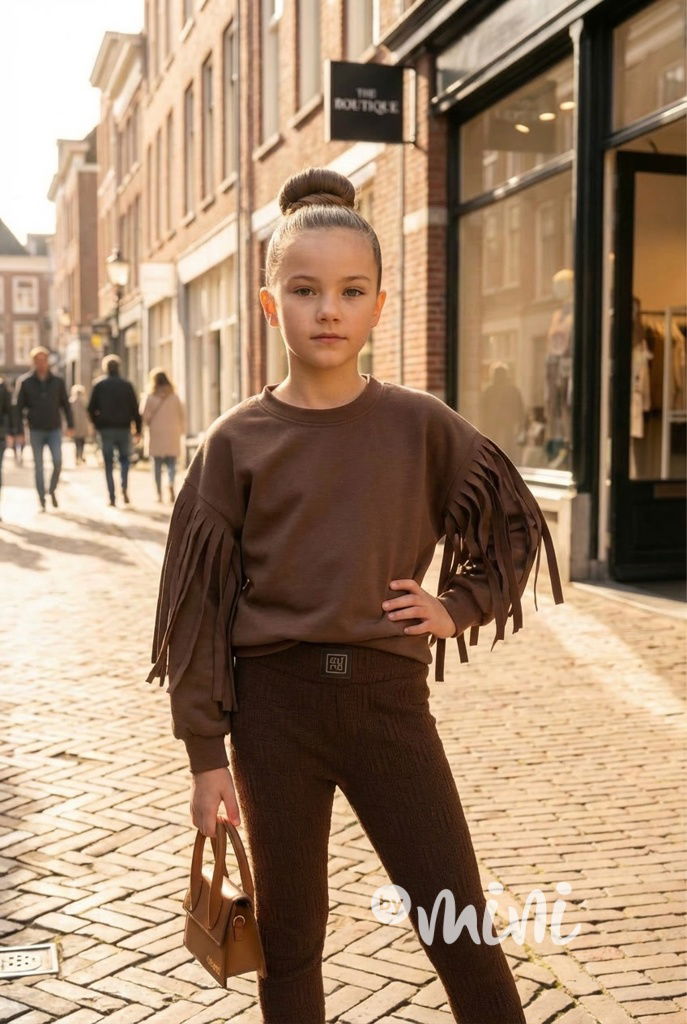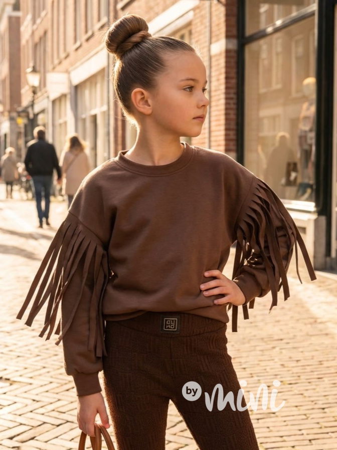 Hnědá mikina s třásněmi