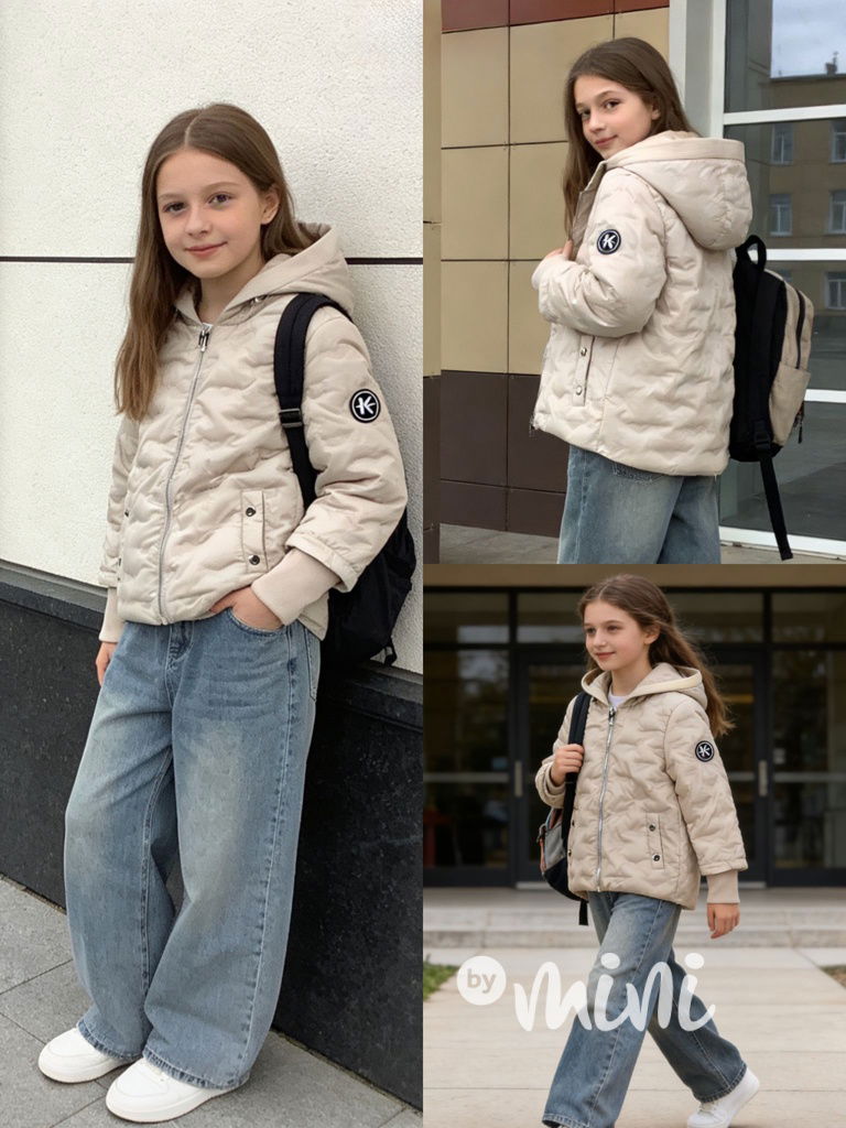 Jarní prošívaná bunda s velkou kapucí, módní střih.