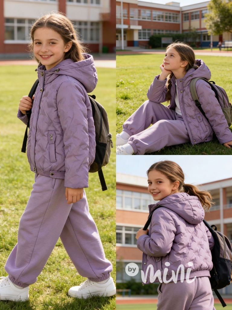 Jarní prošívaná bunda s velkou kapucí, módní střih.