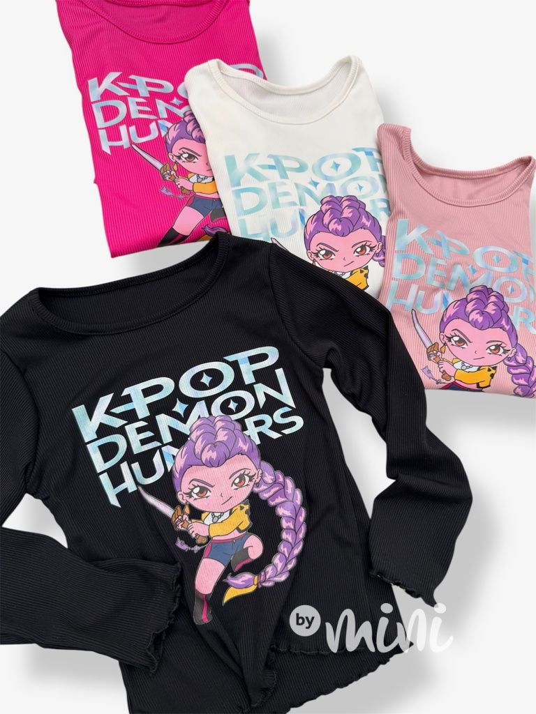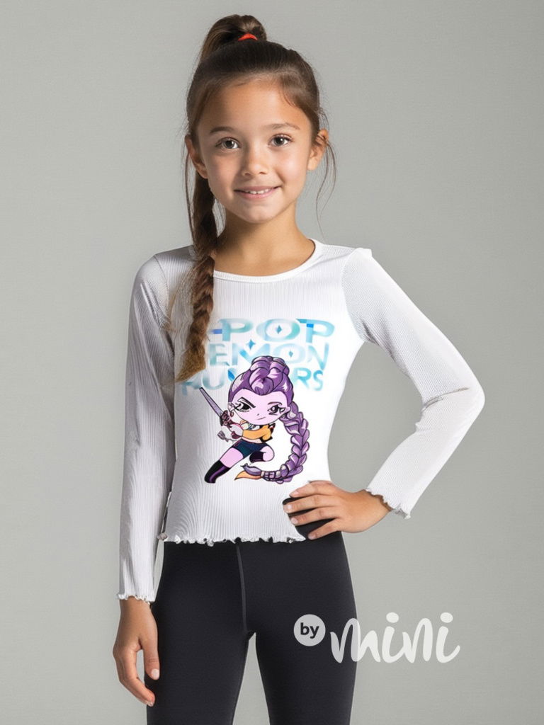 Stretch žebrované triko s dlouhým rukávem, motiv Lovkyně démonů.