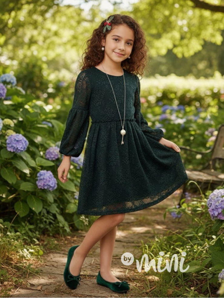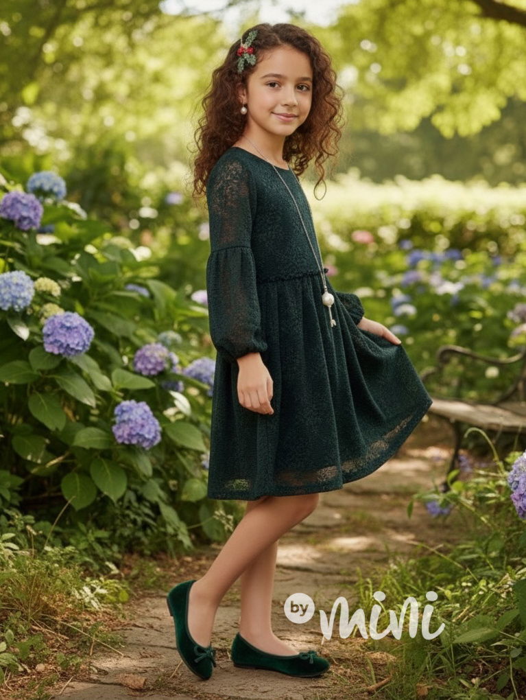 Krajkové boho šaty s řetízkem smaragdové