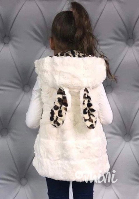 Chlupatá vestička s kapucí (na kapuci ouška) na zip.