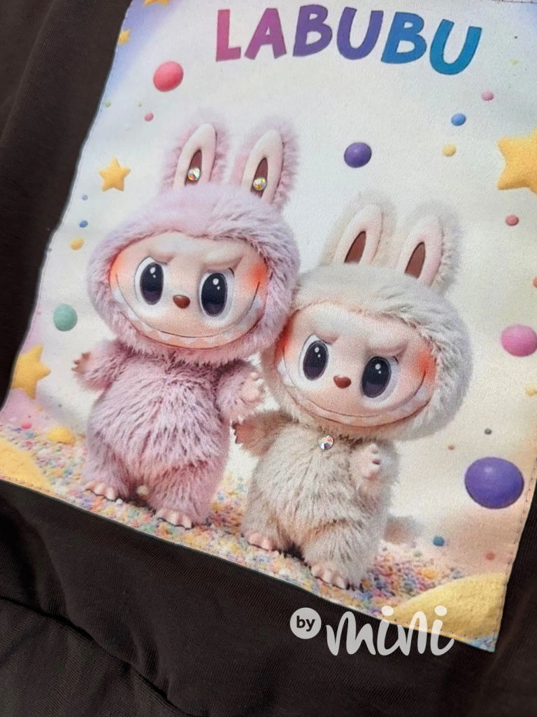 Bavlněná premium mikina s motivem Labubu - detaily s kamínky.