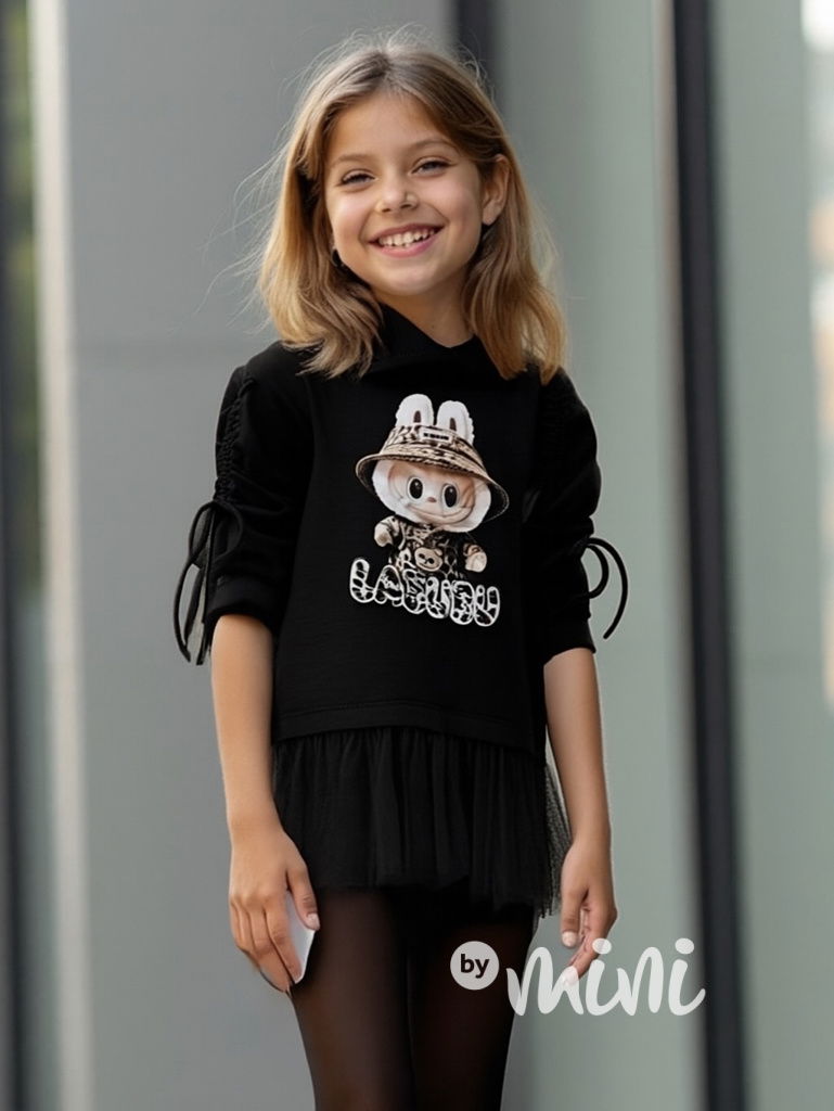 Stylová podzimní mikinová tunika zakončená tylem, kapuce, potisk Labubu.