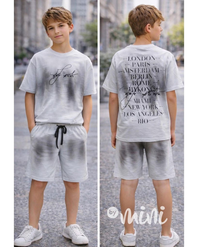 Stylová bavlněná souprava pro chlapce: triko + kraťasy.