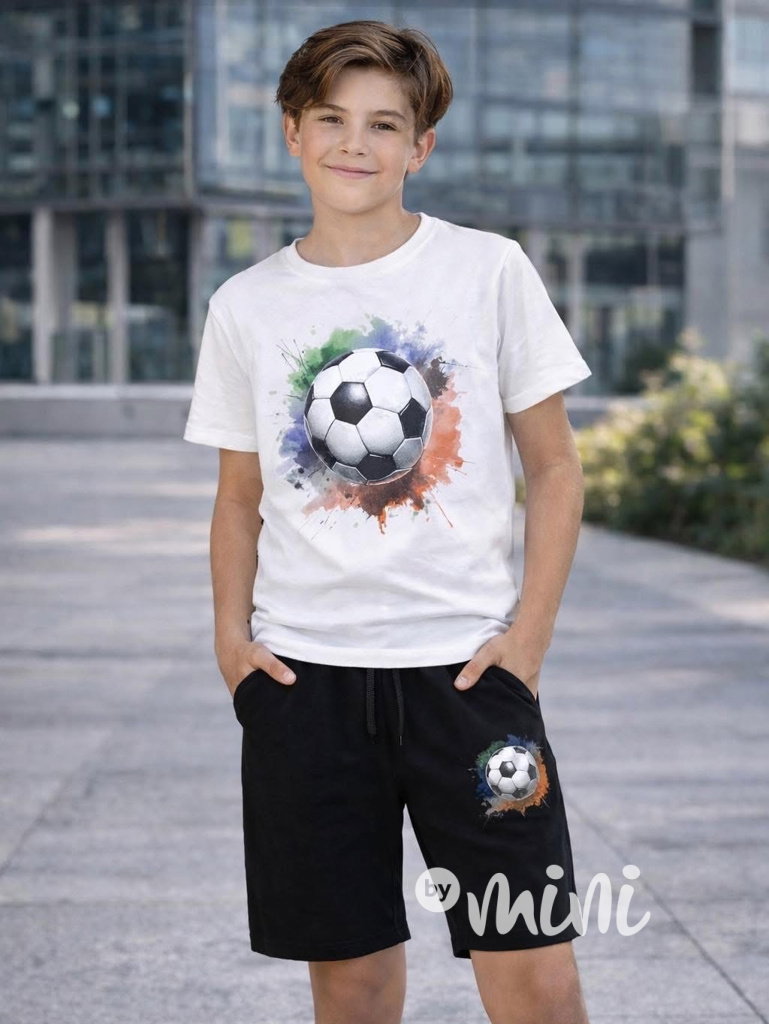 Letní bavlněný komplet s fotbalovým motivem: triko + kraťasy.