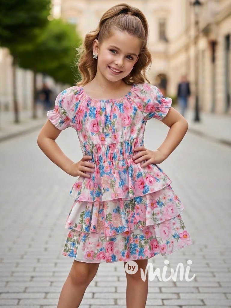 Krásné letní vzdušné květované šaty s vrstvenou sukní.