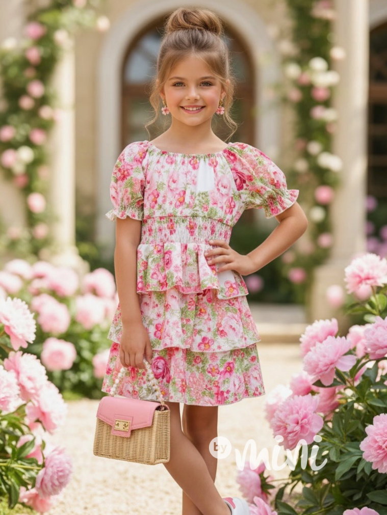 Krásné letní vzdušné květované šaty s vrstvenou sukní.