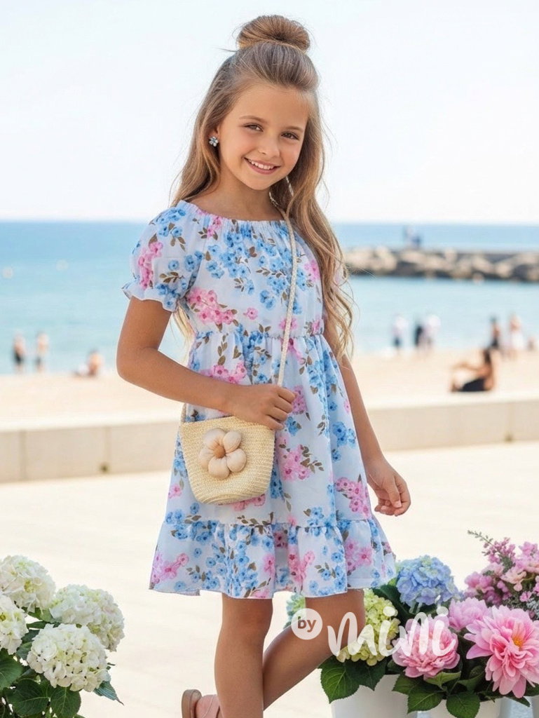 Letní květované šaty s kabelkou blue