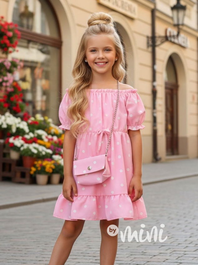 Letní puntíkaté šaty s kabelkou růžové
