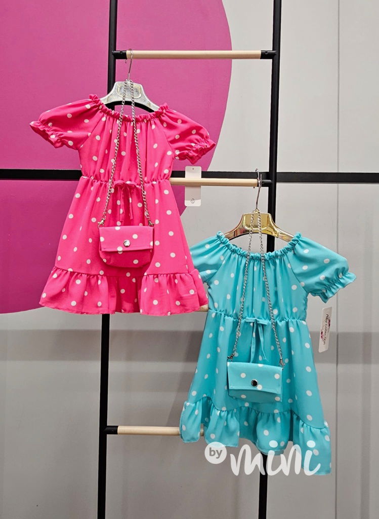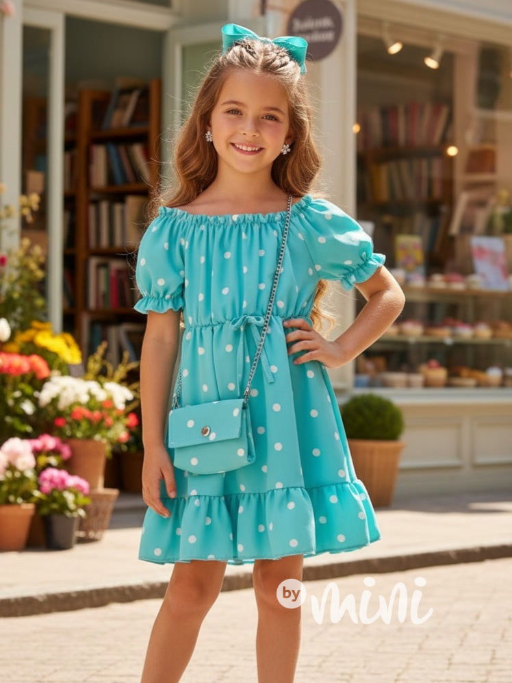 Letní puntíkaté šaty s kabelkou tyrkys
