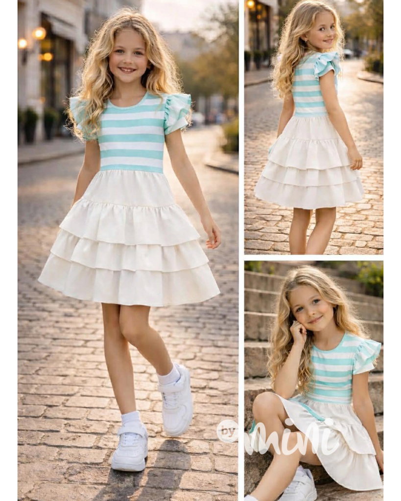 Letní romantic šaty bílo-tyrkysové