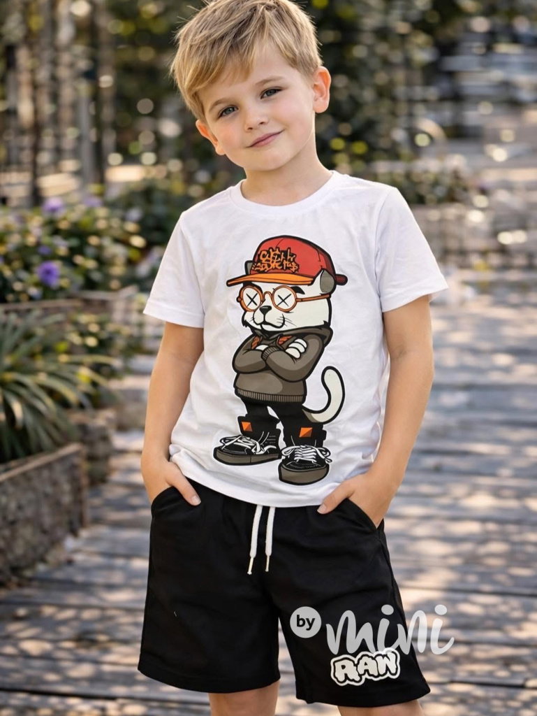 Stylová bavlněná souprava pro chlapce: triko + kraťasy.