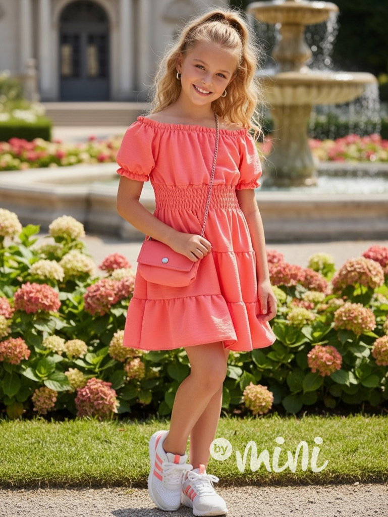 Letní vzdušné šaty s kabelkou coral