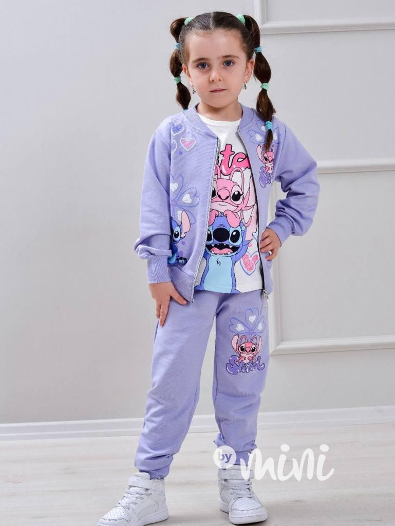 Bavlněná tepláková souprava s motivem STITCHe: mikina + tepláky + triko s krátkým rukávem.